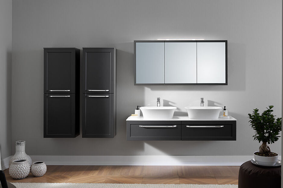 Ce meuble avec évier de 1500 mm de largeur a été conçu pour répondre aux exigences des salles de bains modernes, alliant esthétisme épuré et fonctionnalité avancée. Sa structure fine et équilibrée permet une intégration élégante dans les espaces contemporains tout en offrant une capacité de rangement optimisée. Son design sobre et architectural valorise les lignes horizontales et crée une impression de légèreté visuelle.