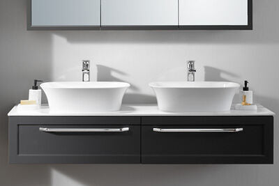 Le meuble est fabriqué en panneau à fibre à densité moyenne avec feuille 3D, garantissant robustesse, stabilité et excellente tenue dans le temps. Il est proposé en Blanc ou Anthracite, deux teintes intemporelles adaptées aux projets élégants et minimalistes. Le lavabo en Kerrock, matériau minéral haut de gamme, assure une surface hygiénique, résistante et douce au toucher.