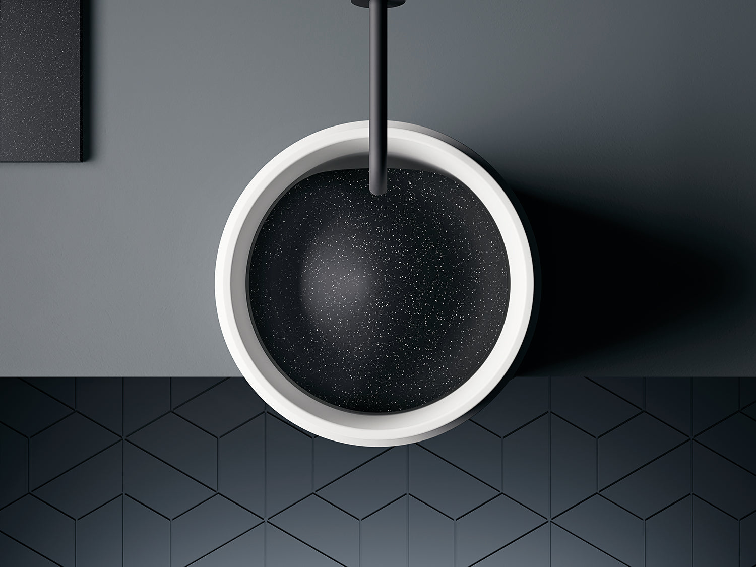 Issu d’une collection imaginée par le designer Daniele Luciano Ferrazzano, ce lavabo incarne l’équilibre parfait entre fonctionnalité et élégance. Son design minimaliste met en valeur les lignes nettes et l’aspect minéral du Kerrock, un matériau premium reconnu pour sa durabilité, son toucher velouté et sa grande résistance aux contraintes d’une salle de bain moderne.
