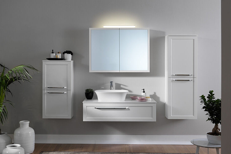 La structure est réalisée en panneau à fibre à densité moyenne avec feuille 3D, garantissant robustesse, stabilité et rendu visuel qualitatif. Le meuble est proposé en deux coloris intemporels : Blanc ou Anthracite, facilitant son adaptation à différents styles d’aménagement. Le lavabo en Kerrock, matériau minéral premium, offre une surface douce, hygiénique et résistante, idéale pour un usage quotidien.